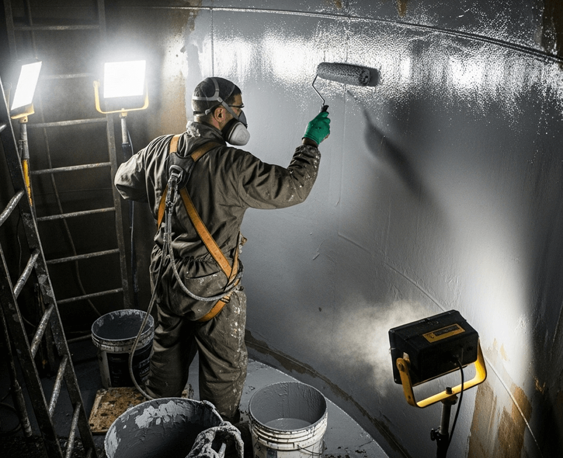 تُطبّق المادة بعد تنظيف الخزان وتجفيفه تمامًا لتكوين طبقة صلبة وملساء تمنع تسرب المياه وتحافظ على نظافتها.