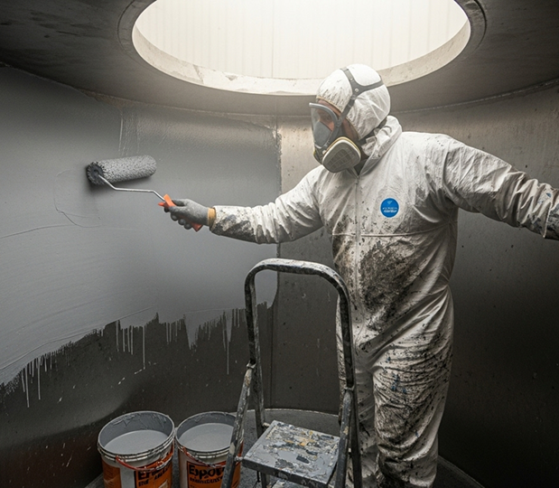 هي عملية طلاء أو تبطين السطح الداخلي (وأحيانًا الخارجي) لخزان المياه باستخدام مادة الإيبوكسي، وهي مادة عازلة قوية مقاومة للماء والرطوبة والمواد الكيميائية.